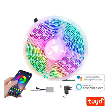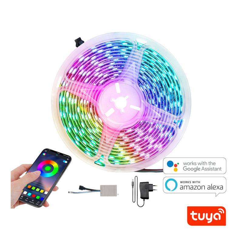 Introducing the ultimate smart lighting solution: the glowell LED Connected Smart Strip Light, powered by Tuya. This innovative strip light lets you take control of your lighting from anywhere, using your smartphone or voice assistants, Google Assistant and Amazon Alexa. With WiFi and Bluetooth connectivity, this smart strip light is easy to set up and control. Use the accompanying app to adjust the brightness, change the color, set timers, and even turn the lights on and off from the comfort of your phone. But that's not all - this smart strip also has a built-in music control feature, allowing you to sync your lighting with your favorite tunes. Whether you're hosting a party or just want to set the mood, the glowell smart strip light has you covered.